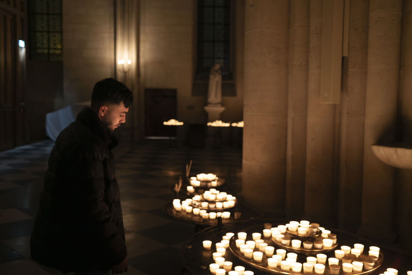 On Monday, April 21, 2025, Notre-Dame Cathedral in Paris hosted a prayer vigil in honor of Pope Francis, who passed away that morning at the age of 88. At 11 a.m., the cathedral's bells tolled 88 times, symbolizing each year of his life. Masses were held at noon and 6 p.m., followed by a rosary at 7 p.m. and a prayer vigil from 8 p.m. to midnight, presided over by Auxiliary Bishop Emmanuel Tois. Faithful gathered in a solemn atmosphere, surrounded by candles and prayers, to pay tribute to a pontiff who profoundly impacted the Church and the world.
