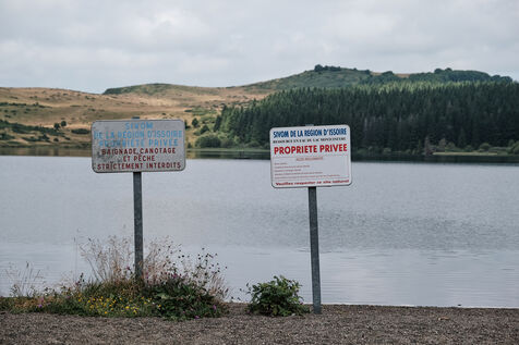 France, lac de Montcineyre, Auvergne, 2022-07-23. Réservoir naturel d'eau potable, le lac de Montcineyre appartient au syndicat mixte de l'eau de la région d'Issoire, dans le département du Puy-de-Dôme en France. La baignade et le canoë sont interdits et un gardien surveille le lac jour et nuit pendant les mois d'été. Frédéric Bichon en est le responsable depuis dix ans.