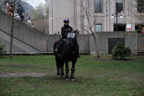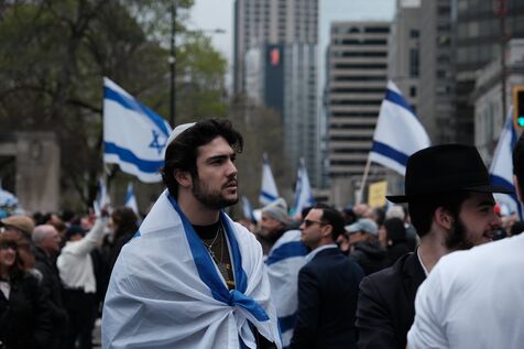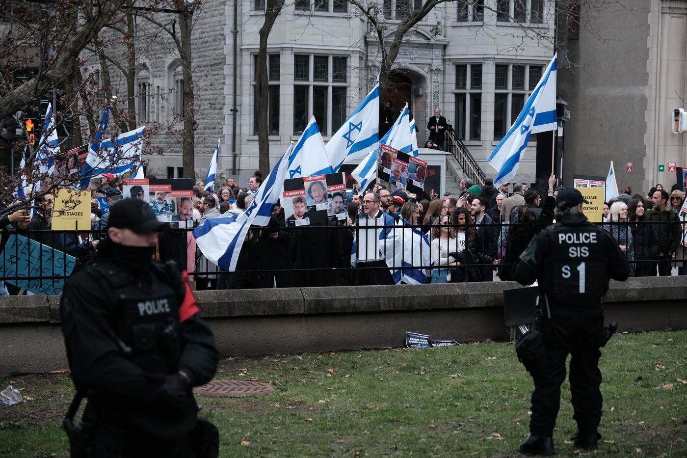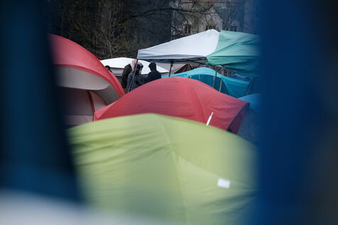 Canada, Montreal, may 2 2024-05-02, at McGill university, Pro-Palestinian student activists have set up camp on the grounds since five days following a wave of similar protests on campuses across the United States. Jewish groups and pro-Israel protesters organized a counter demonstration near the camp. Photograph by Bastien Durand / Hans Lucas.