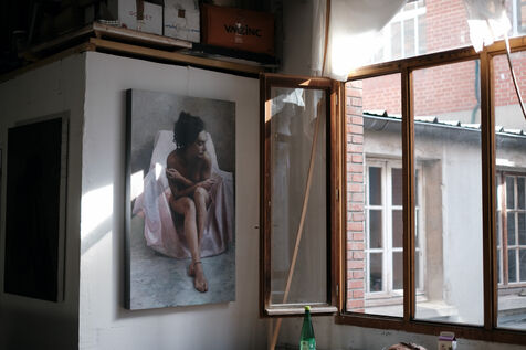 Aux murs, plusieurs de ses toiles accrochées.