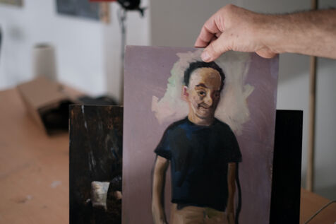 Il les a déjà faits. Ces deux autoportraits qu'il me montre en souriant, et dans lesquels c'est vrai, j'avoue qu'on le reconnaît.