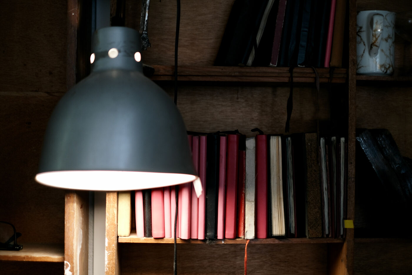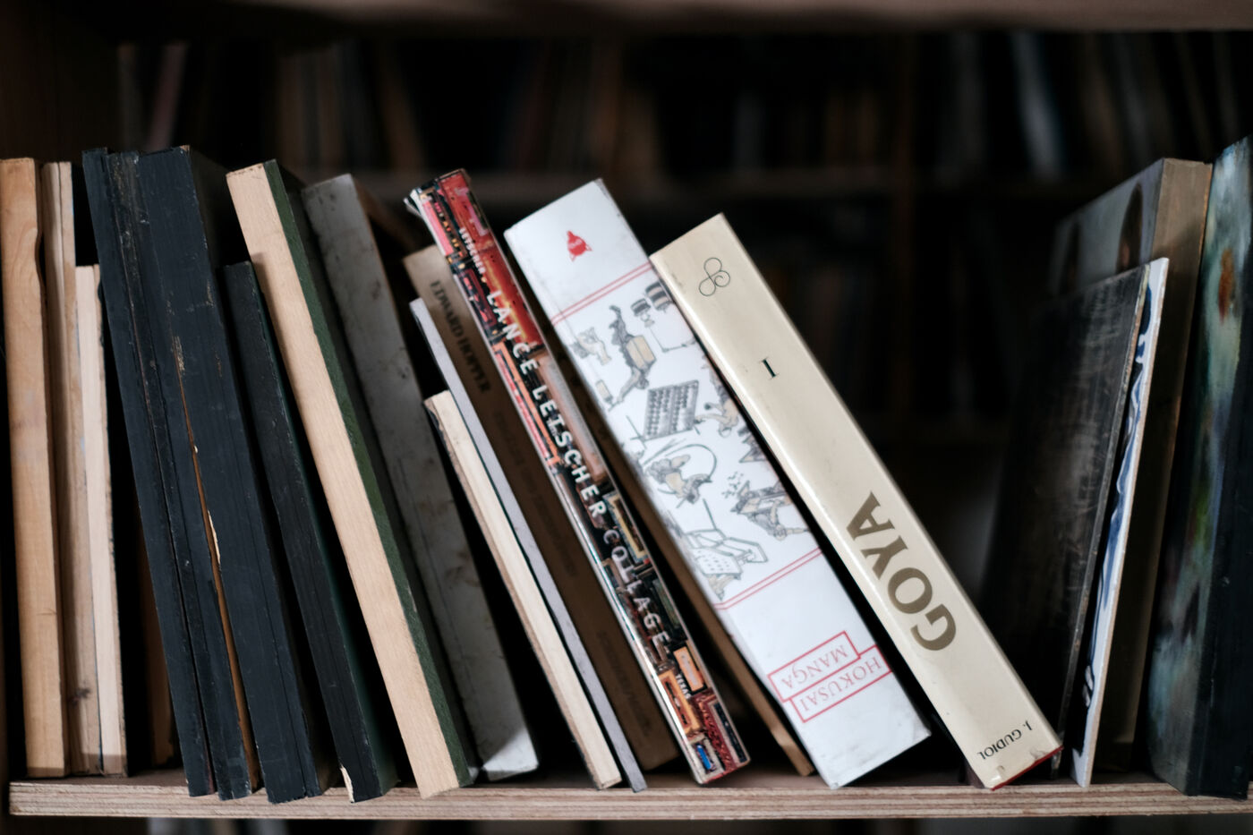 Everywhere, shelves filled with art books, works and notebooks.