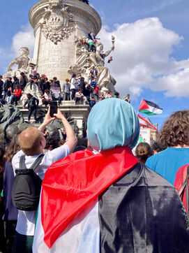 A l'appel de plusieurs organisations de la jeunesse (Union étudiante, Union syndicale lycéenne, Comité Palestine Sorbonne, Rassemblement pour l'égalité et la démocratie, Comité Palestine Sciences-Po), des milliers de manifestants se sont réunis en soutien à la Palestine et pour dénoncer le génocide mis en oeuvre par le gouvernement israélien, le dimanche 25 mai 2025 sur la place de la République, Paris, France.
