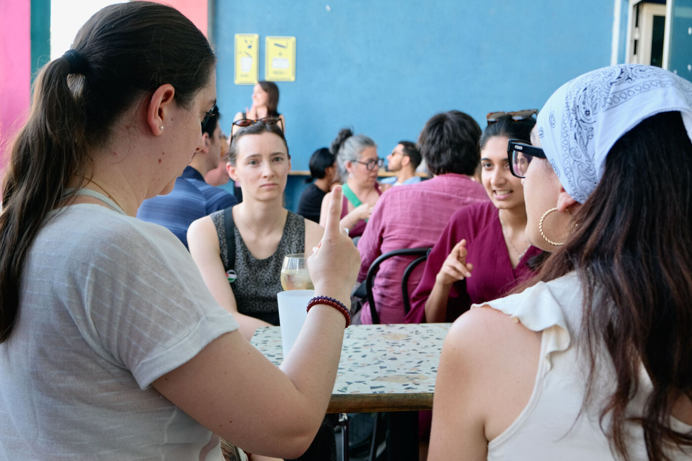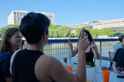 Des malentendants, des personnes sourdes, des entendants, des traductrices, tout le monde vient faire l'expérience simple d'un verre entre ami.e.s.
