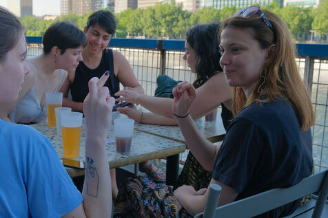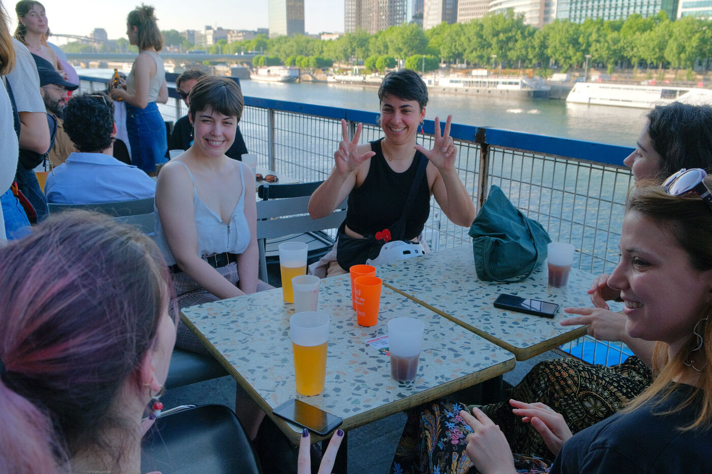 En terrasse, à Paris, dans des endroits joyeux et inclusifs comme Les Amarres, des groupes de gens viennent passer la soirée et faire connaissance.