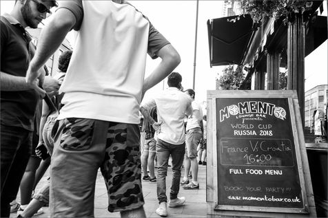 Elle venait justement d'éliminer l'Angleterre. Et c'est dans une Londres soudain désintéressée par la coupe du monde que les supporters français, tels des résistants isolés, convergeaient individuellement ou par petits groupes vers des pubs convertis à leur cause et où ils se retrouvaient soudain en écrasante majorité. Dans celui où j'étais je n'ai vu qu'une ou deux personnes supporter la Croatie et oser montrer leur satisfaction lors d'un début de match très accroché.