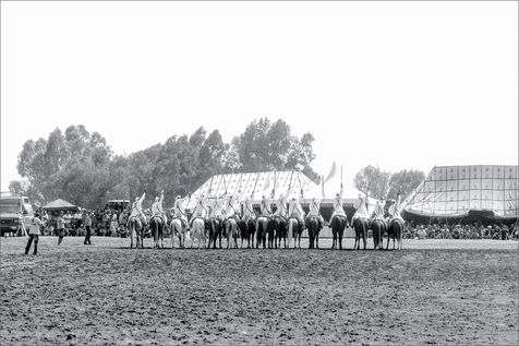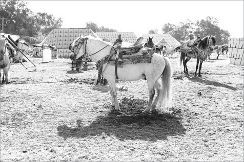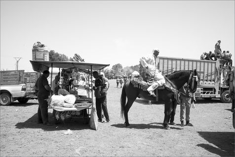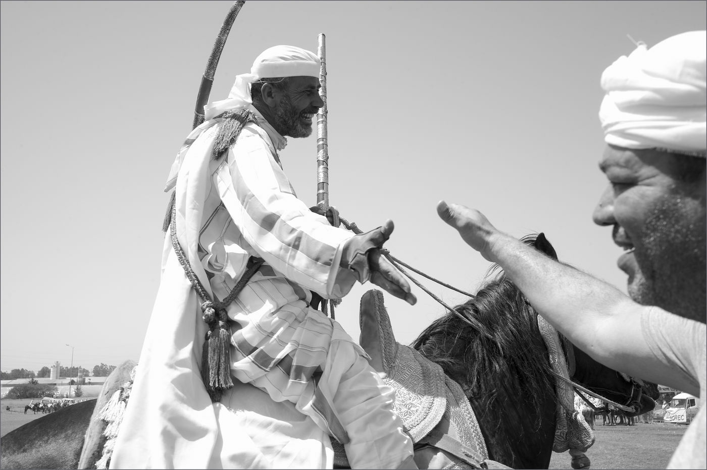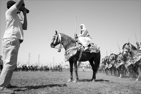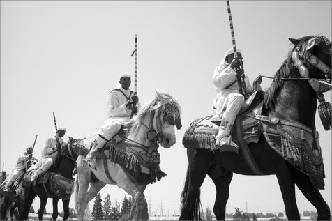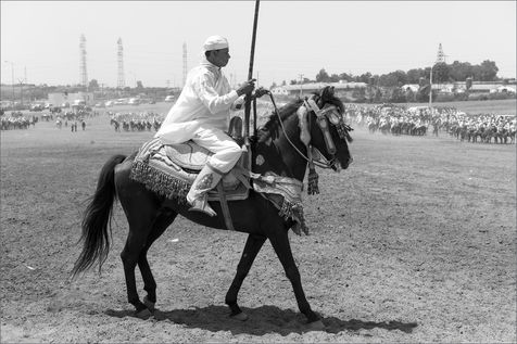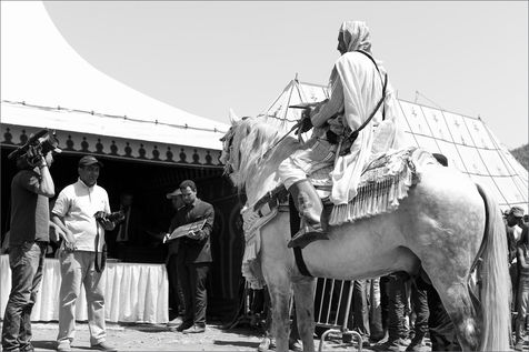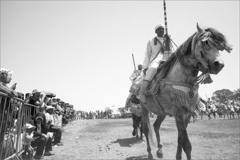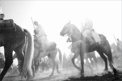 The photographs were taken during the Kenitra tbourida day on May 2, 2016, as part of the calendar of competitions organized each year throughout Morocco by the SOREC (Royal Society for the Encouragement of the Horse). "The competitions reward in particular the perfect alignment, the quality of the start, the behaviour of the riders, the harnessing of the horses, the art in the execution of the rifle game and the precision and simultaneity of the detonations carried out by each troop of tbourida (sorba) composed of 11 to 15 aligned riders. »