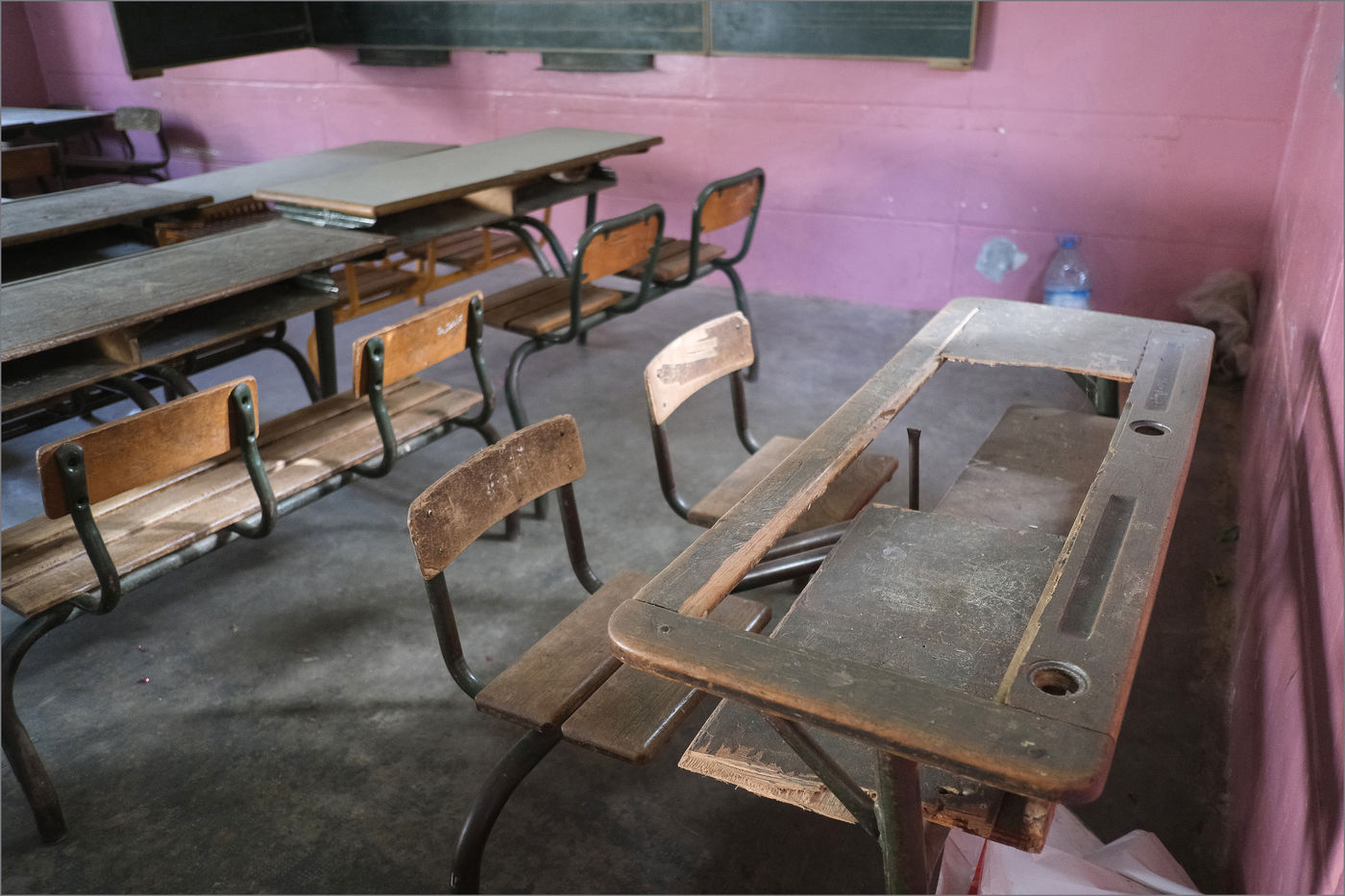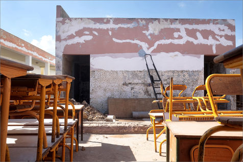 - the images which testify to the dilapidation of the facilities before renovation (the decision was taken to suggest the situation by showing the children's stuffs and their environment without showing them themselves)