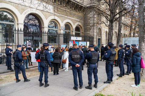 Plusieurs dizaines de manifestants se sont réunis le 06 novembre 2020 devant l'Hôtel-Dieu pour protester contre la décision de l'Assistance publique - Hôpitaux de Paris (AP-HP) de mettre à «l'arrêt temporaire» les urgences de cet établissement.
