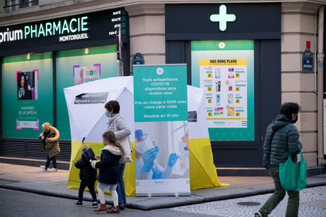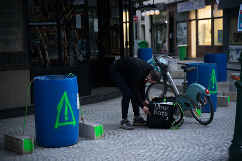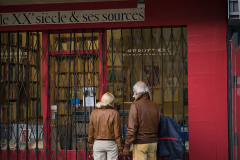 Although the measures are less radical, the streets are particularly empty, especially in tourist areas. Restaurant chairs are piled up, and police patrol the busiest areas. Only the most precarious, the homeless, the Uber Eats en Vélib delivery people, are present everywhere. On Rue Montorgueil, the pharmacy has set up a stand to be tested for the virus, further towards Beaubourg an elderly couple tries to find a book in a bookstore that practices "Click & Collect".