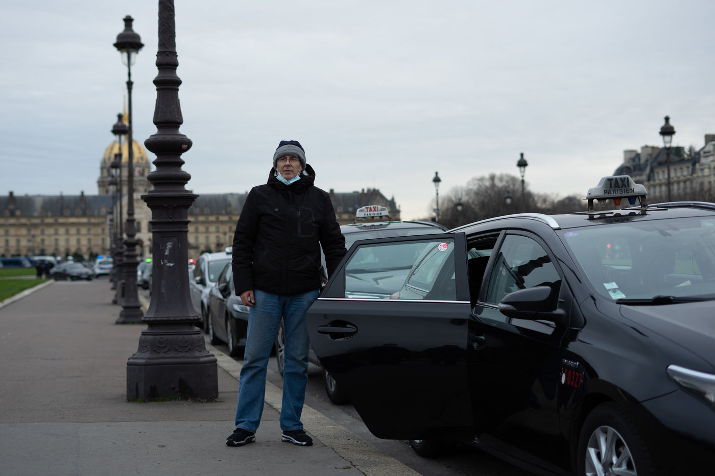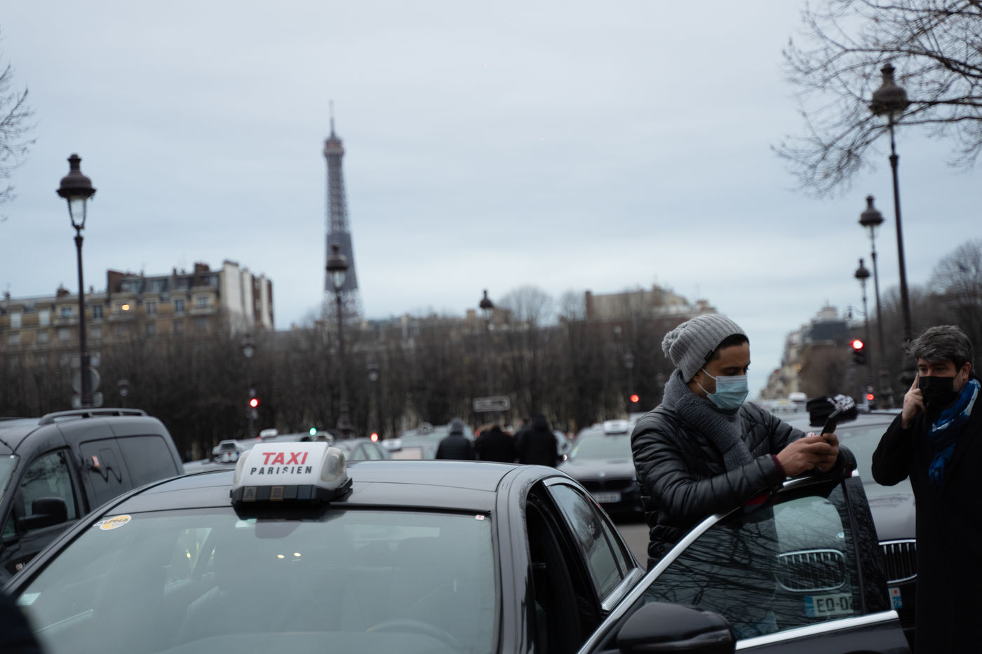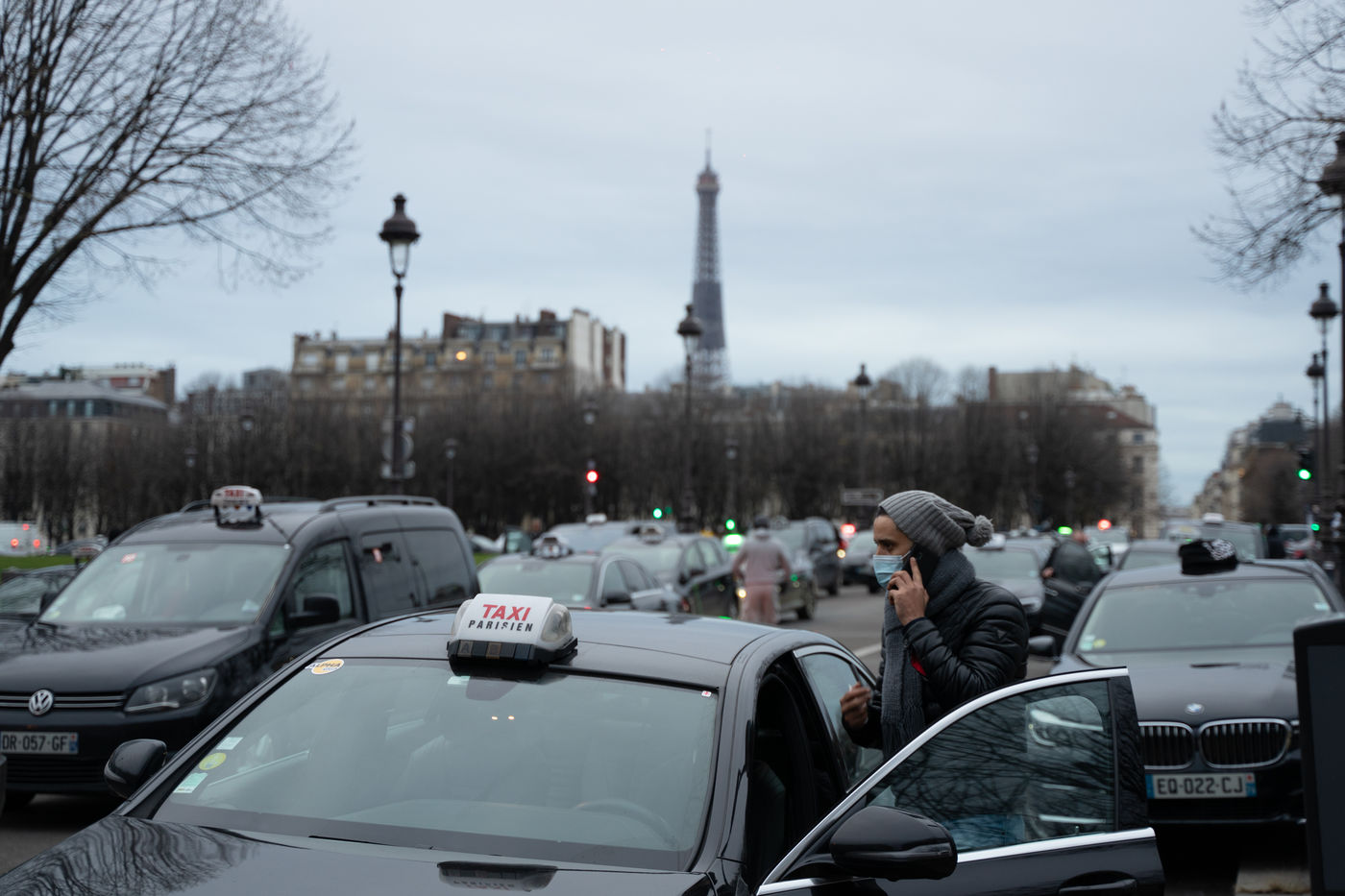 Parisian cabs drove from Roissy-Charles de Gaulle airport to Place des Invalides to protest against unfair competition from VTC.