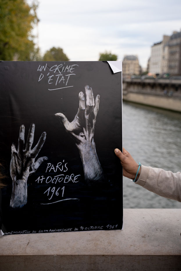 Il y a soixante ans jour pour jour, des Algériens, venus manifester pacifiquement dans la capitale contre un couvre-feu, étaient massacrés sous l'autorité du préfet de police de l'époque Maurice Papon. Plusieurs personnes se sont rassemblées au Pont Saint-Michel afin de rendre hommage aux victimes. Les policiers ont empêché les manifestants de se rendre à même le pont pour rendre hommage aux victimes du massacre du 17 octobre 1961.