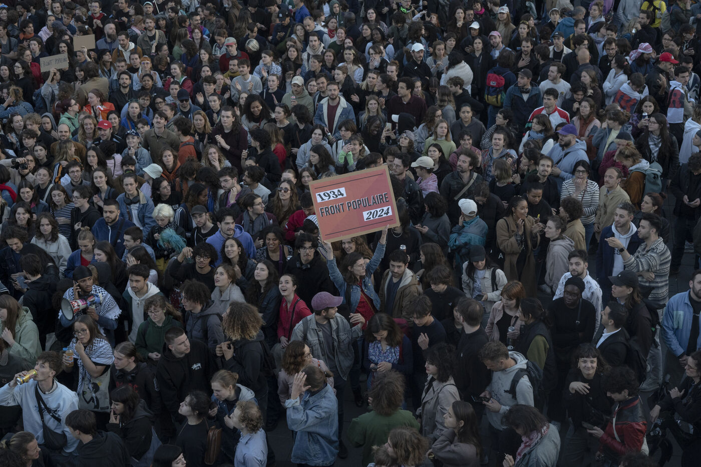 Paris, France. 2024-06-10. Plusieurs milliers de personne se sont réunies contre l'extrême-droite, place de la République, à Paris, au lendemain la dissolution de l'assemblée nationale.