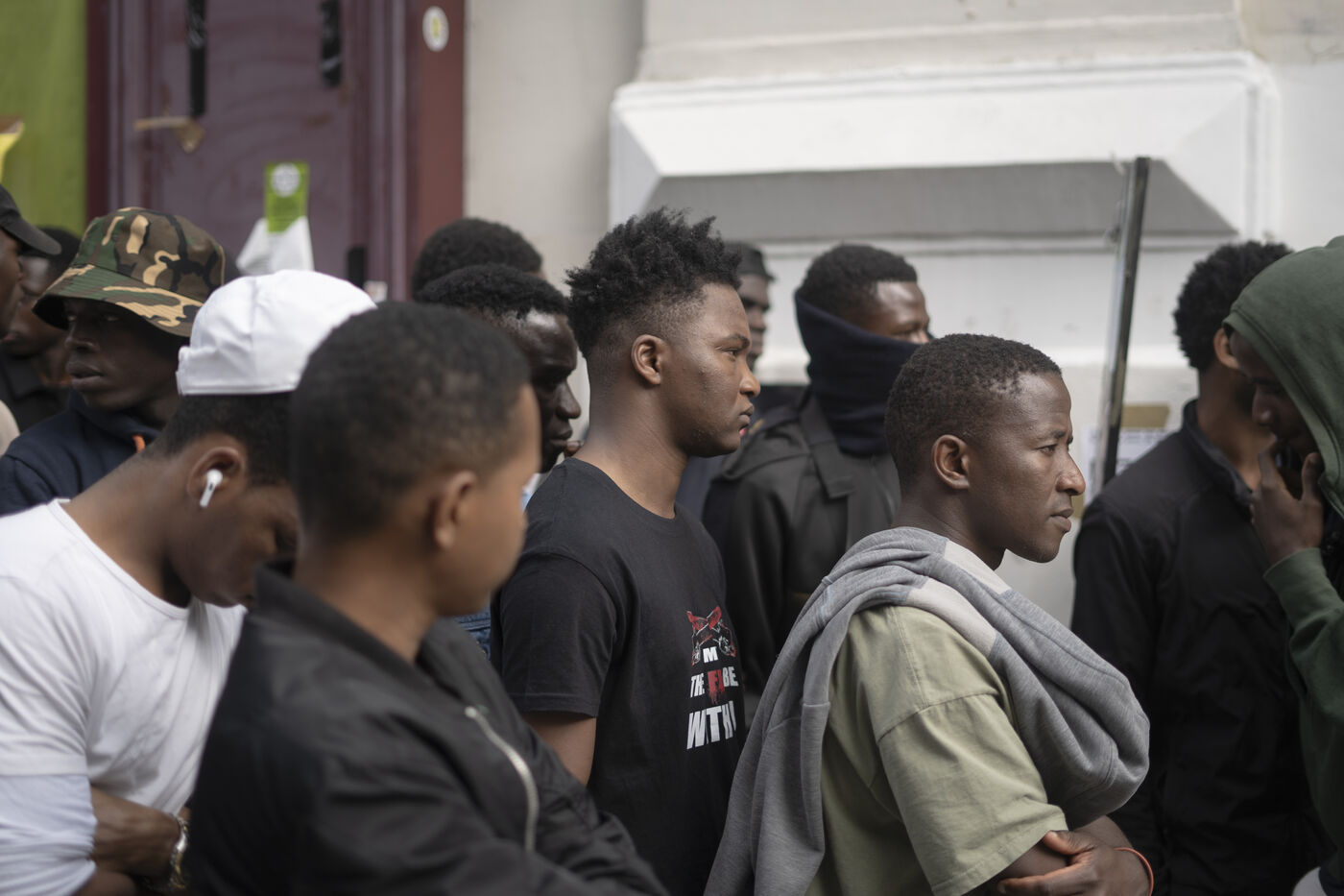 Several dozen people gathered outside the Maison des Métallos, the cultural venue occupied by the unaccompanied minors, on the eve of the evacuation order requested by the city of Paris. Paris, 19.06.24