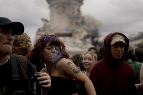 Blockade in Paris as part of the September 10 movement. Photograph by Benjamin Beraud / Hans Lucas