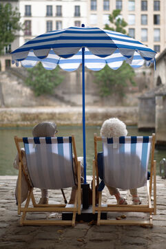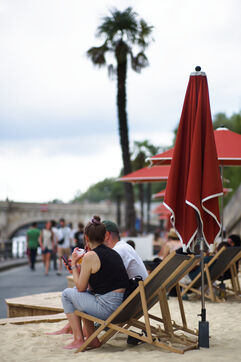 Ile de la cité - Paris - France, Paris Plage welcomes Parisians and tourists young and old for a moment of relaxation in the sun on the banks of the Seine.