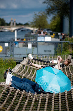 Ile de la cité - Paris - France, Paris Plage accueille les parisiens et les touristes, jeunes et moins jeunes pour un moment de détente au soleil sur les bords de la Seine.
