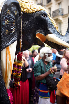 Paris - France : réunion de la communauté indienne à Paris au temple de Sri Manicka Vinayakar Alayam pour célébrer la fete de Ganesh le 31 août.