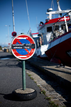 Roscoff - France : chaluts à l’amarre sur le port de Roscoff en attendant de reprendre la mer.
