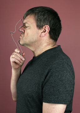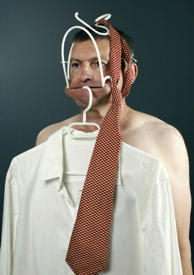Fasciné par le mystère dégagé par chaque visage, j'ai utilisé le mien comme un outil dans l'élaboration de ces autoportraits. Comme pour un menu « retour du marché » quand le cuisinier se laisse guider par les produits achetés, j'ai concocté chaque image en partant de la réalité de l'objet récolté. Pas d'idées arrêtées au départ de la construction de l'image mais une recherche un tâtonnement et des essais multiples. J'ai travaillé, seul, sans voir ce que je photographiai exactement, je n'ai pas utilisé d'écran de contrôle, quand j'appuyais sur la télécommande radio pour déclencher, je laissais la place au hasard et à l'imprévu. Souvent j'ai été surpris, voire effrayé, par le résultat.
