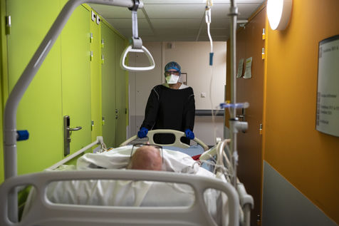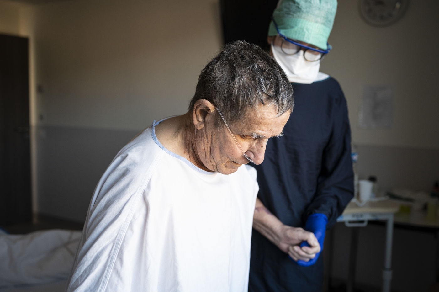 Si l'attention est focalisee sur les capacites en lits de reanimation, de nombreuses autres personnes sont hospitalisees dans des conditions moins critiques mais aussi difficiles. Les visites ne sont autorisees que lorsque la mort semble s'approcher de trop pres. On retrouve aussi celles et ceux qui ne peuvent pas etre accueillis dans les services de soins intensifs à cause de leur sante trop fragile. Reportage en « service Covid » a l'hopital d'Annonay, au coeur de la region Auvergne-Rhone-Alpes. Jean est en train d'etre prepare pour sa seance de dialyse.