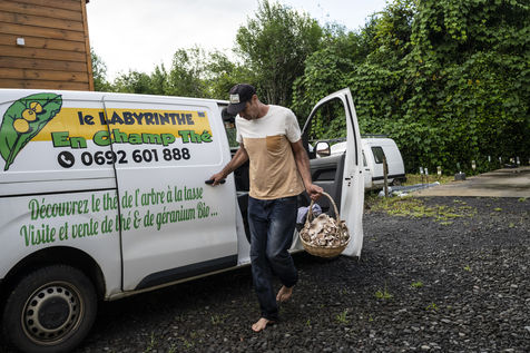 At first considered "crazy" when they started growing tea, Johnny Guichard and his wife Emmanuelle are now at the head of a flourishing business with 15 employees. Last year, they harvested 10 tons of tea and exported to the four corners of the world. Their farm, called the Labyrinth in the Tea Field, welcomes up to 20,000 people a year, even leading the family to set up tours in English to meet the high demand. Meeting with this giant with a soft heart of 2m02 passionate about tea and all his team in the wilderness of Reunion Island.