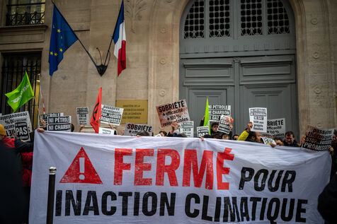 Around 200 activists from eight environmental movements (including ANV-Cop21, Greenpeace, Extinction Rebellion, Alternatiba, Dernière Rénovation...) symbolically blocked the entrance to the Ministry of Ecological Transition, renamed the "Ministry of Ecological Betrayal" for the occasion, in reaction to government announcements deemed "out of touch" with ecological planning.