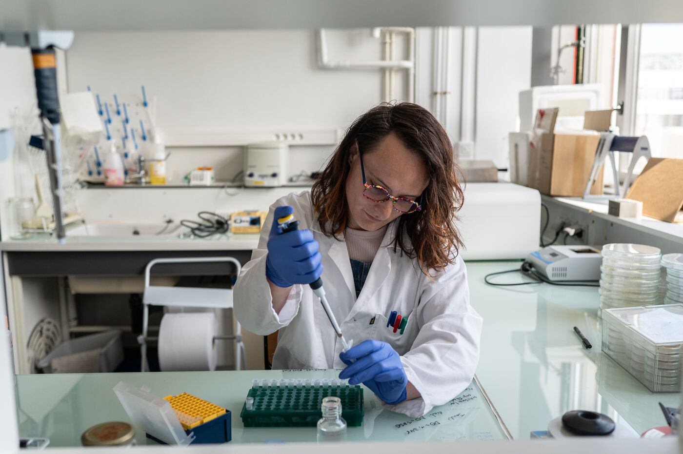 Marnie Mallet is a doctoral student in the M2E unit, Microbiology of Extreme Environments, at the MAP laboratory (UMR 5240). Her work aims to find a solution for PFAS remediation by developing, with her colleagues Philippe Oger, Sonia Mion, and Yoann Louis, new tools for screening defluorinases using metagenomics. She studies bacteria from contaminated environments in the hope of finding an enzyme that could break down perfluorinated chains, known and developed for their resistance.