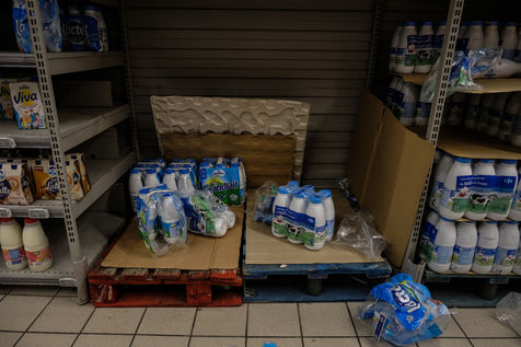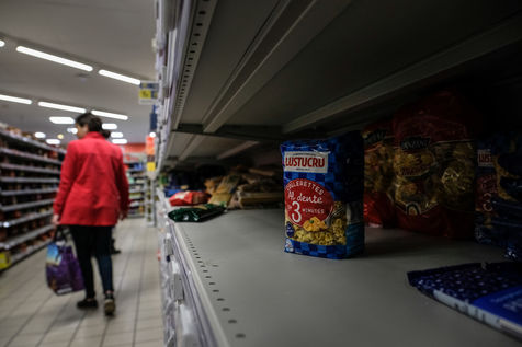 In the shops, basic necessities are taken by storm, leaving the shelves empty and ransacked. Paws, rice, sugar, flour, egg, milk, household products, toilet paper.