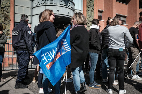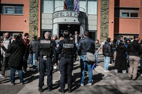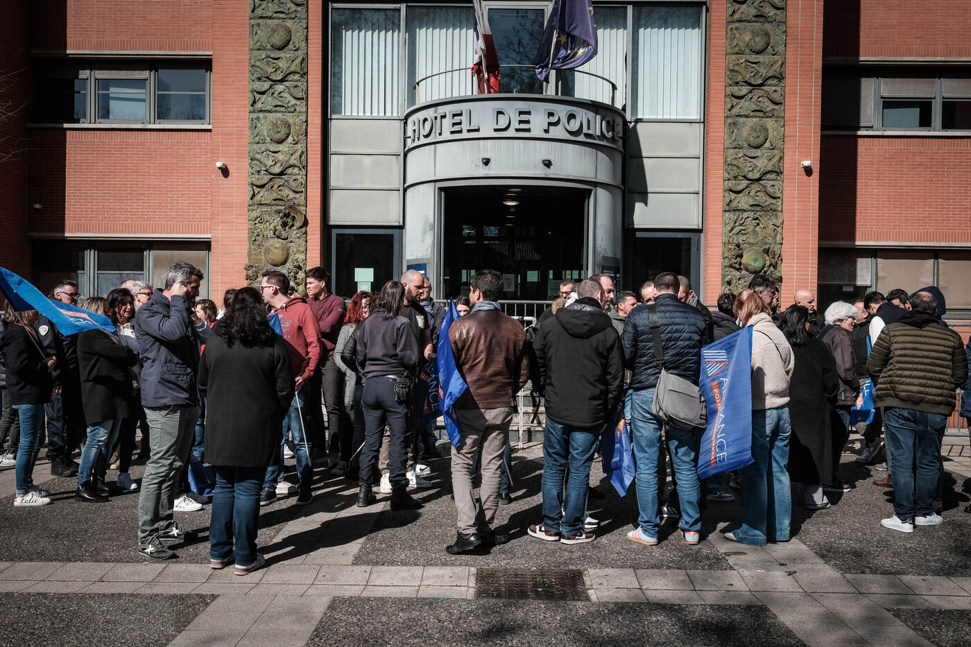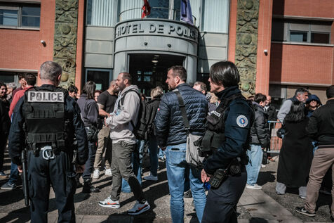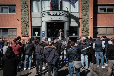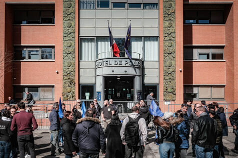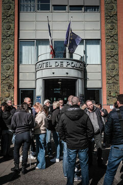 Around 50 police officers gathered in front of the Embouchure police station in Toulouse on the call of the Alliance union in support of their colleague Florian, following the ruling that Florian M. should stand trial for the murder of young Nahel in 2023.