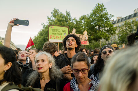 Rally to celebrate the result of the legislative elections in Paris. Thousands of people gathered in Place de la République to celebrate the defeat of the RN. Tensions erupted in the evening, and the situation deteriorated further around 11pm.