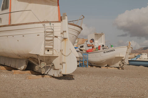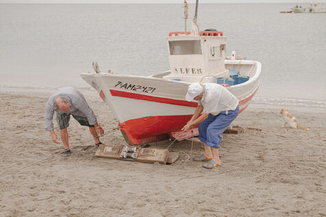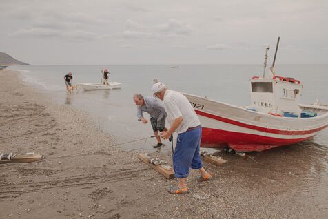 The fishermen of Cabo de Gata only sleep when there's a westerly Poniente wind. Cabo de Gata, a small village in Almeria, triples its population in summer, but in winter everyone knows everyone else. They are the 5th generation of fishermen, and their fishing methods are the same as those of their parents in the 40s and 60s.The main problem with fishing is trawling,but their methods allow them to fish in deep water without damaging the environment. Unlike trawlers, which waste resources and ravage the seab