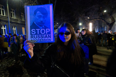 Manifestation à Cracovie contre la guerre en Ukraine