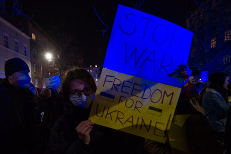 Protest in Krakow against the war in Ukraine