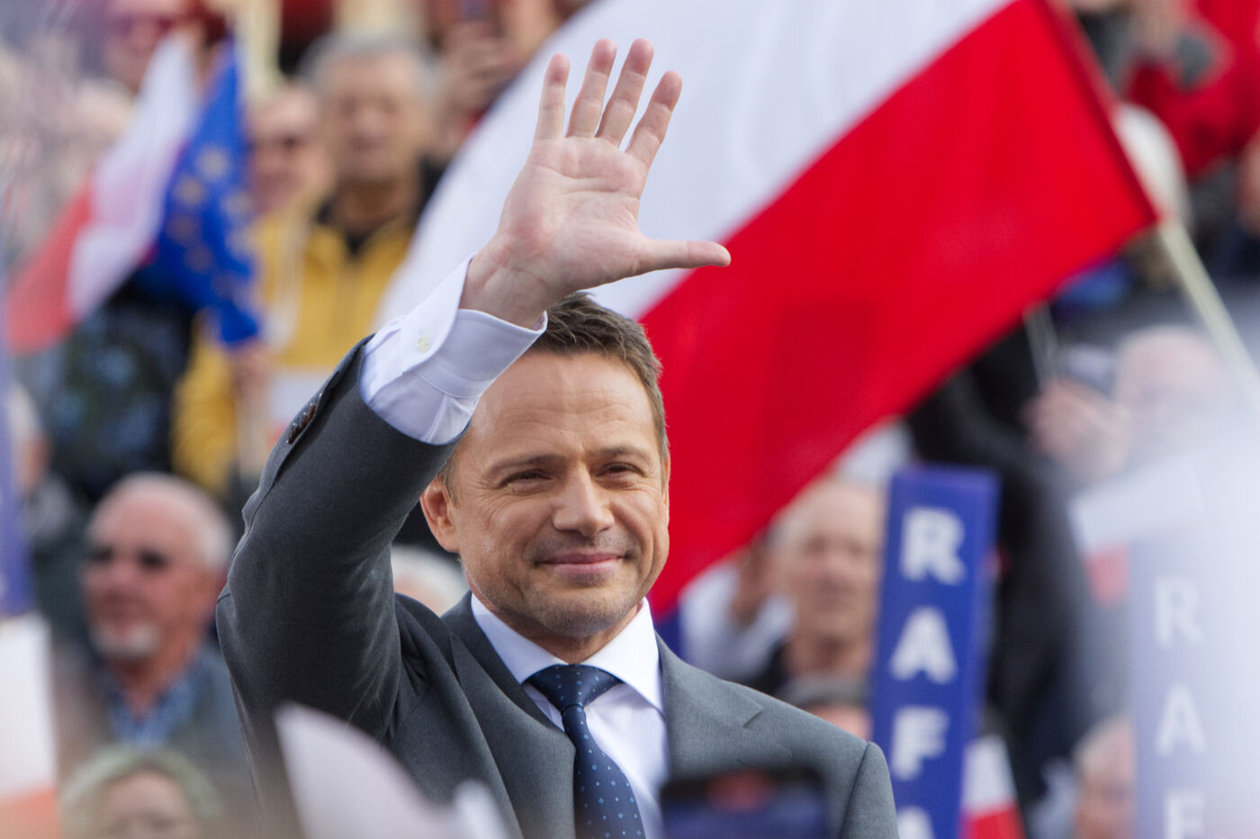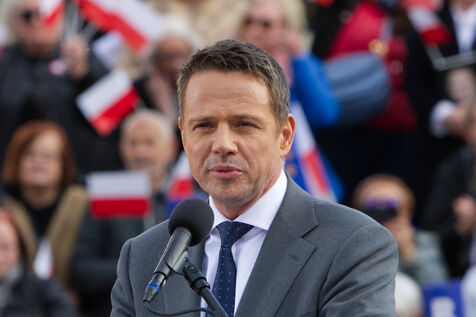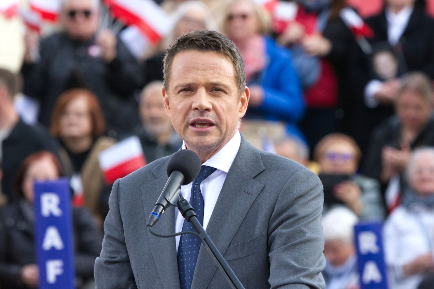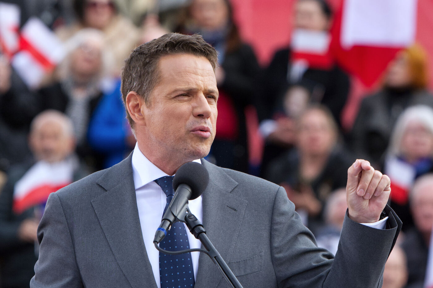 Presidential candidate Rafal Trzaskowski speaks at a rally in Krakow, Poland.