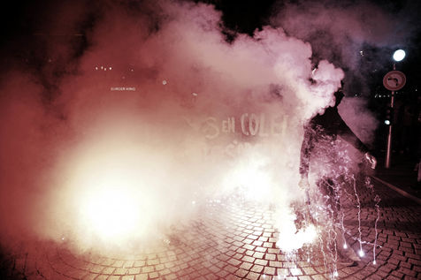 Soirée de la "marche de la colère" contre la mairie de Marseille, suite aux effondrements d'immeubles rue d'Aubagne et aux évacuations dans le quartier de Noailles. Mercredi 14 novembre 2018.