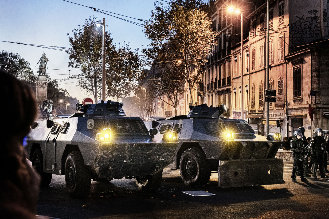 Yellows vests demonstrated in the morning in front of the prefecture. They then joined the old port peacefully in the direction of the town hall. Blocked by a barrage of CRS, they wished to advance on the avenue of the republic. They were stopped again. The CRS then decided to send tear gas to repel the protesters to the canebière.At that time, the CRS have left a small group of yellow vests flee to the town hall. Two armored vehicles then arrived as reinforcements and stood in front of the town hall, before advancing to the port. The demonstrators were then pushed back to the canebière, to the district of the Reformed. They were joined by some young people from the neighborhood. Breakage, garbage burning, the CRS responded with tear gas.