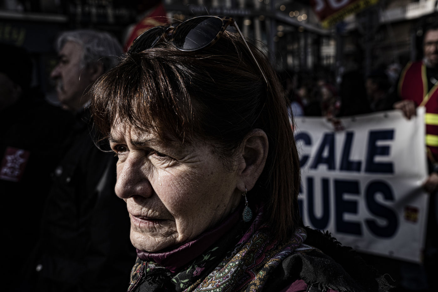 Le mercredi 29 janvier 2020, les gens manifestent à Marseille contre la réforme des retraites. Ils sont moins nombreux qu'à la dernière manifestation. Malgré le soleil, l'ambiance est moins festive, la lassitude se fait sentir. Les médias ne parlent pas beaucoup de la manifestation.