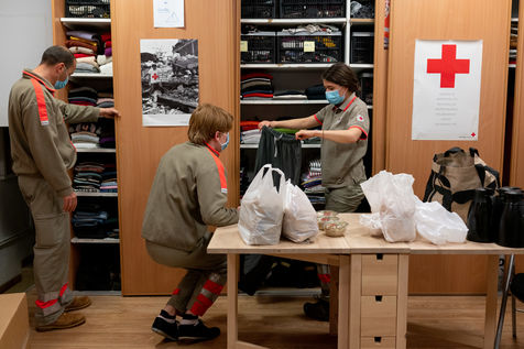 Clothes, food, hot drinks, hygiene kit from donations are distributed according to needs during the marauding.