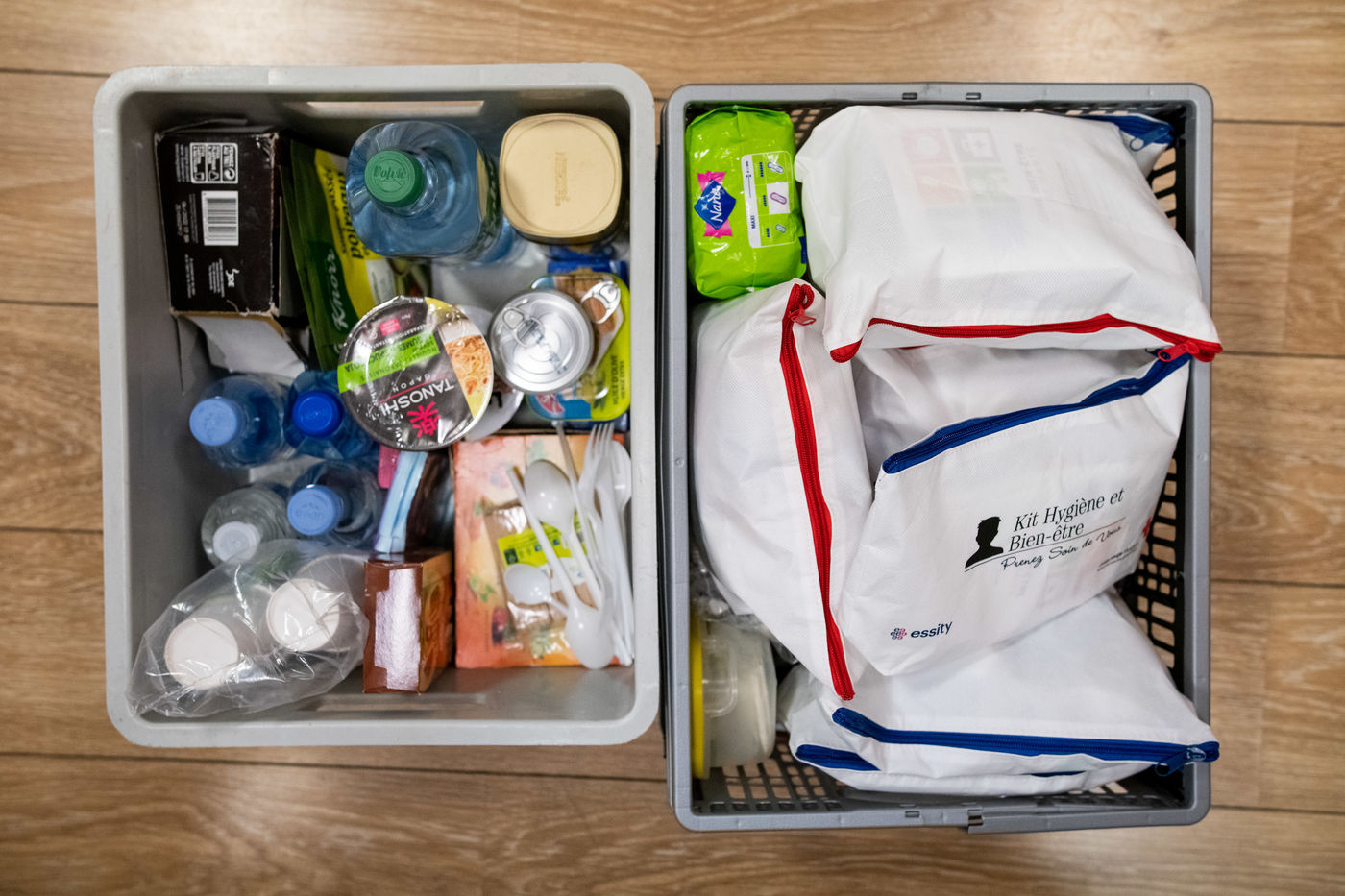 Des vetements, de la nourriture, des boissons chaudes, un kit d'hygiene provenant de dons sont distribues en fonction des besoins pendant la maraude.