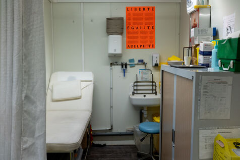 Le centre est géré par l?association Aurore et Gaia et est principalement visité par des consommateurs de crack. Sur l?image l?accueil par lequel tout les entrants doivent passer pour s?enregistrer.