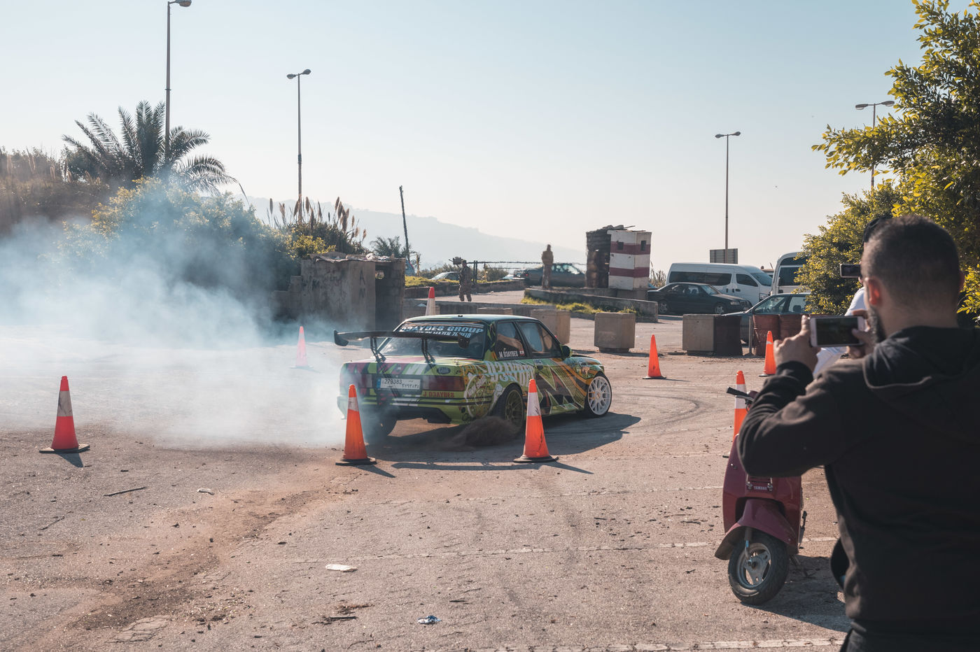 Ce jour-là, il s'agissait de quelque chose de différent. Il y avait de fortes détonations et de la fumée, non pas à cause d'un danger mais d'un rassemblement. Un dimanche après-midi normal à Tripoli, au nord du Liban, une ville que beaucoup de gens considèrent comme dangereuse, il y avait une toute autre animation. Vous pouviez y observer environ trois cents personnes de toutes les villes du Liban rassemblées pour regarder le spectacle. Vous pouvez voir des gens de tous les âges, de différentes religions, des familles, des couples, des amis se tenant autour de la piste et attendant le début du spectacle. Lorsque le spectacle a commencé, vous pouvez voir l'excitation et le bonheur sur le visage des spectateurs. Pour eux, c'était comme un moyen de s'évader de la réalité, de la vie difficile qu'ils mènent dans ce pays. C'était l'occasion d'oublier leurs problèmes, d'oublier la destruction, la crise économique et tout ce qui se passe de mauvais autour d'eux. D'un autre côté, vous voyez les conducteurs concentrés et dévoués à ce qu'ils font, et quand ils commencent à drifter, ils se sentent intouchables, ils ont l'impression d'être les plus forts, et les meilleurs dans ce qu'ils font. La beauté du peuple libanais, ils font de leur mieux pour profiter de la vie avec ce qui leur en reste, et pour garder le sourire.