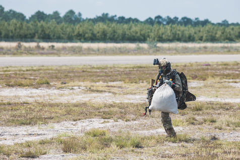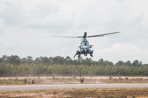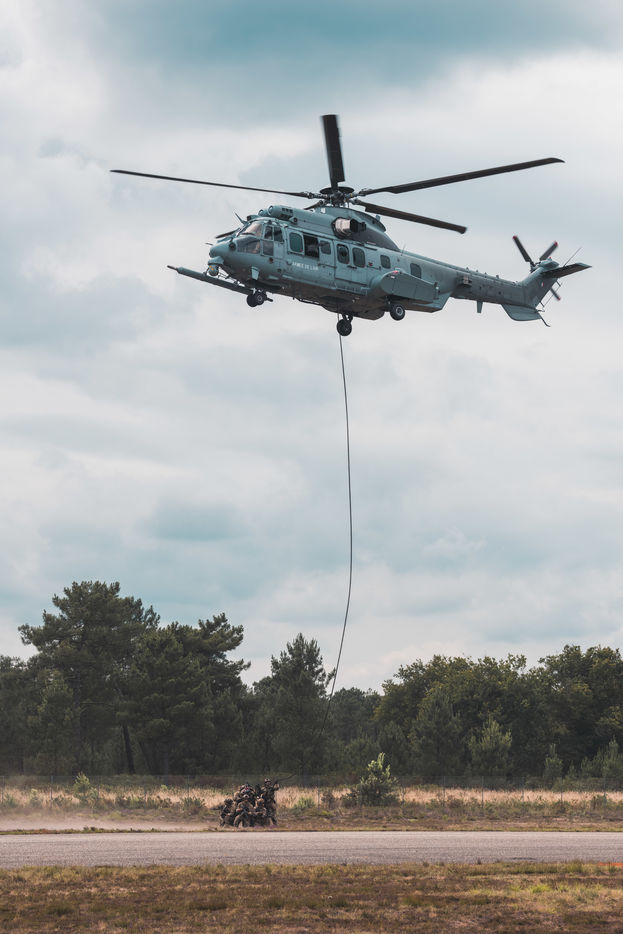 Démonstration des dragons parachutistes du 13eme RDP pendant Le séminaire du réseau d'innovation des forces d'opérations spéciales (SOFINS) à Martignas-sur-Jalle, dans le sud-ouest de la France.