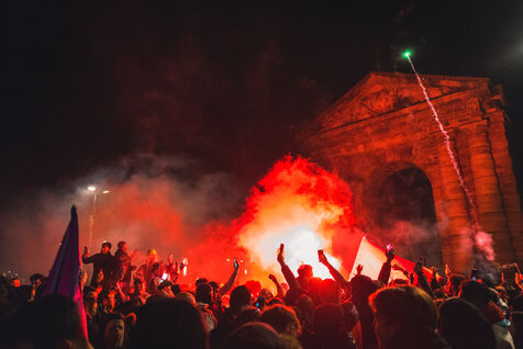 Semi-final match of the World Cup 2022 France Morocco. The fans celebrate the victory of France despite the disappointment of the Moroccan side. December 14, 2022, in Bordeaux.