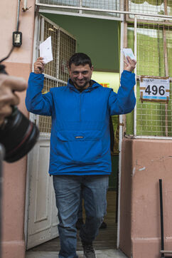 Presidential pre-candidate Juan Grabois on his way to cast his vote.