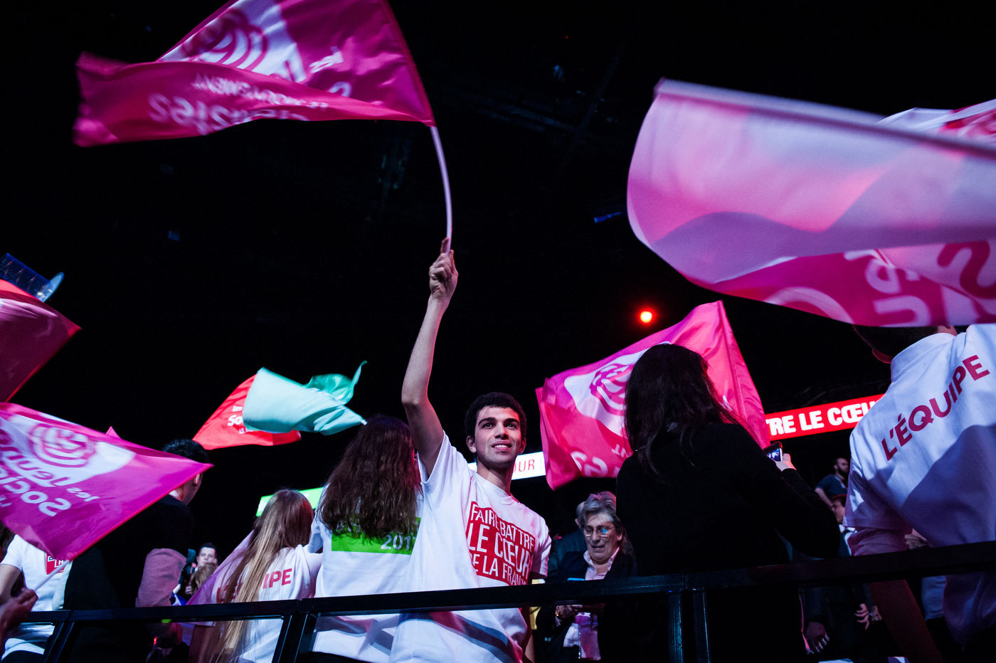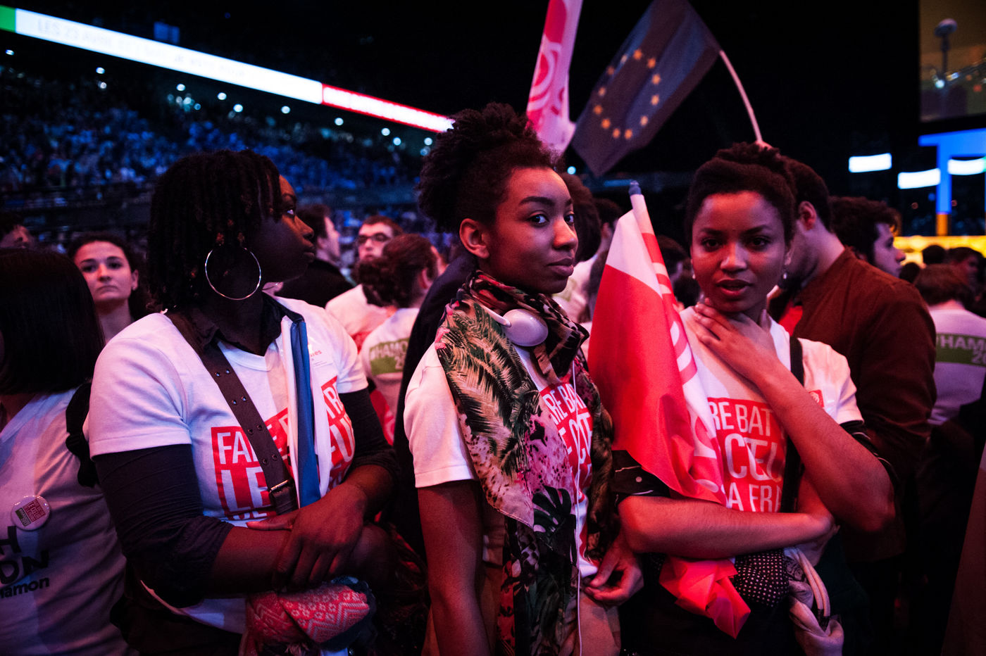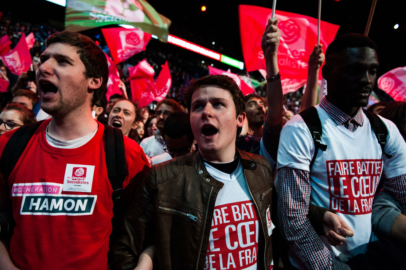 Grand meeting de Benoit Hamon, candidat du parti socialiste à l'election présidentielle, au palais omnisport de Bercy.