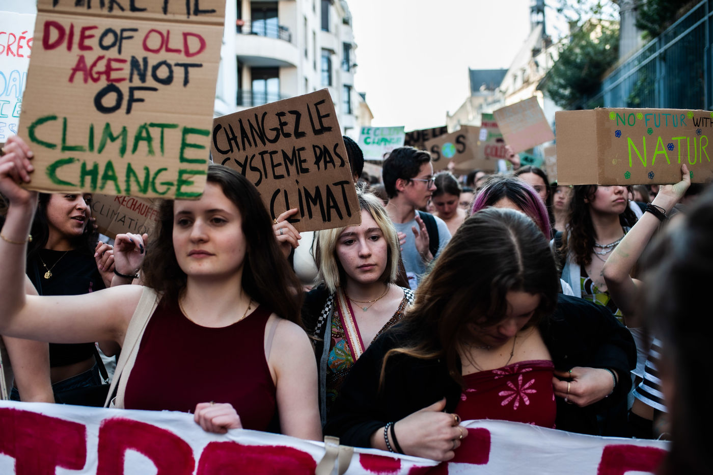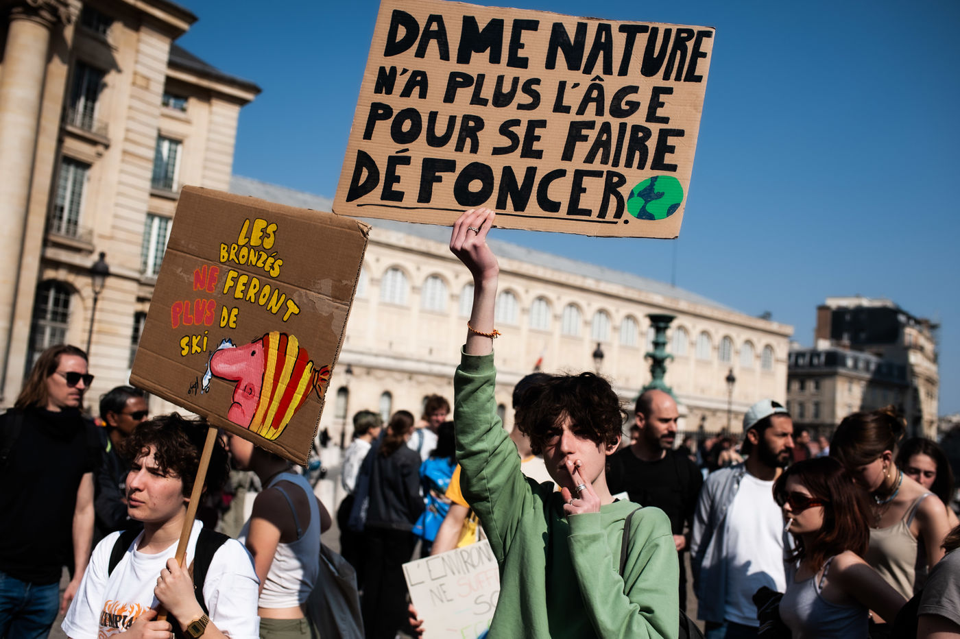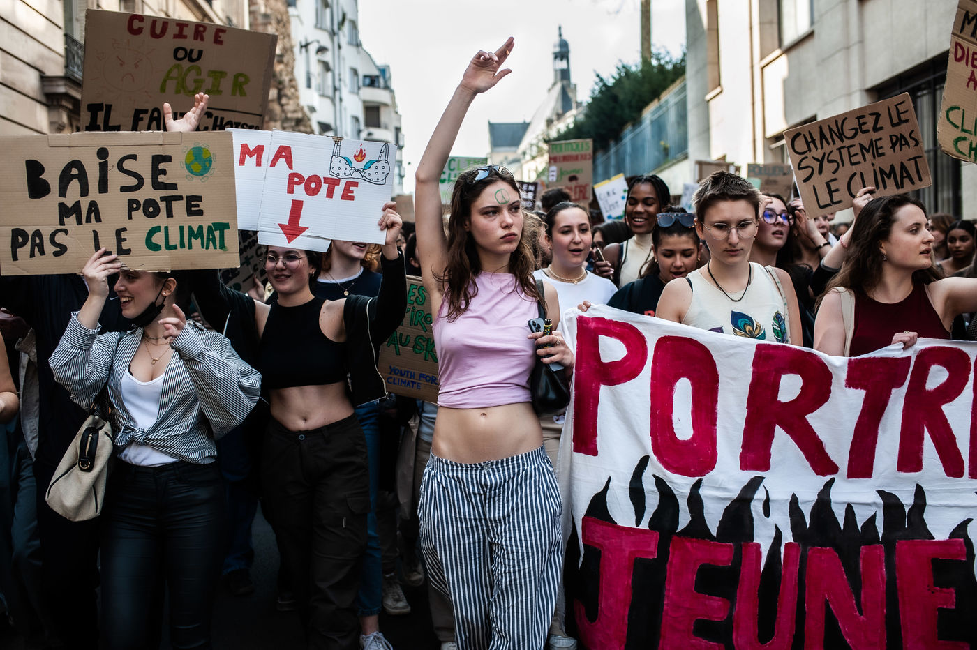 France, Paris 25/03/2022. Thousands of students marched to protest against climate change and take up the Friday For the Future movement, initiated by environmental activist Greta Thunberg. Photographs by Benjamin Mengelle / Hans Lucas.