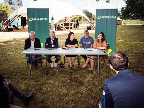 Conférence de Presse EELV pour les Journées d'été. Les Journées d'été ont lieux sur l'Ile Balzac à Tours du 22 au 24 aout 2024.