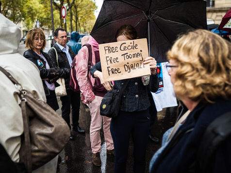 Rally in front of the Iranian embassy for Cécile Kohler hostage in Iran.