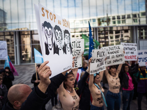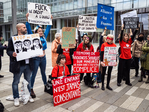Rally in support of victims of sexual violence in front of the Palais de Justice, Porte de Clichy.